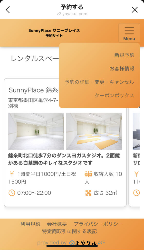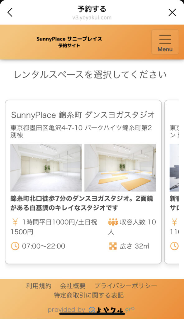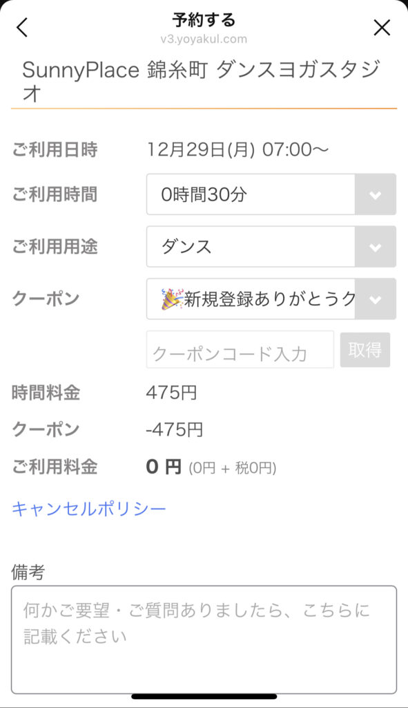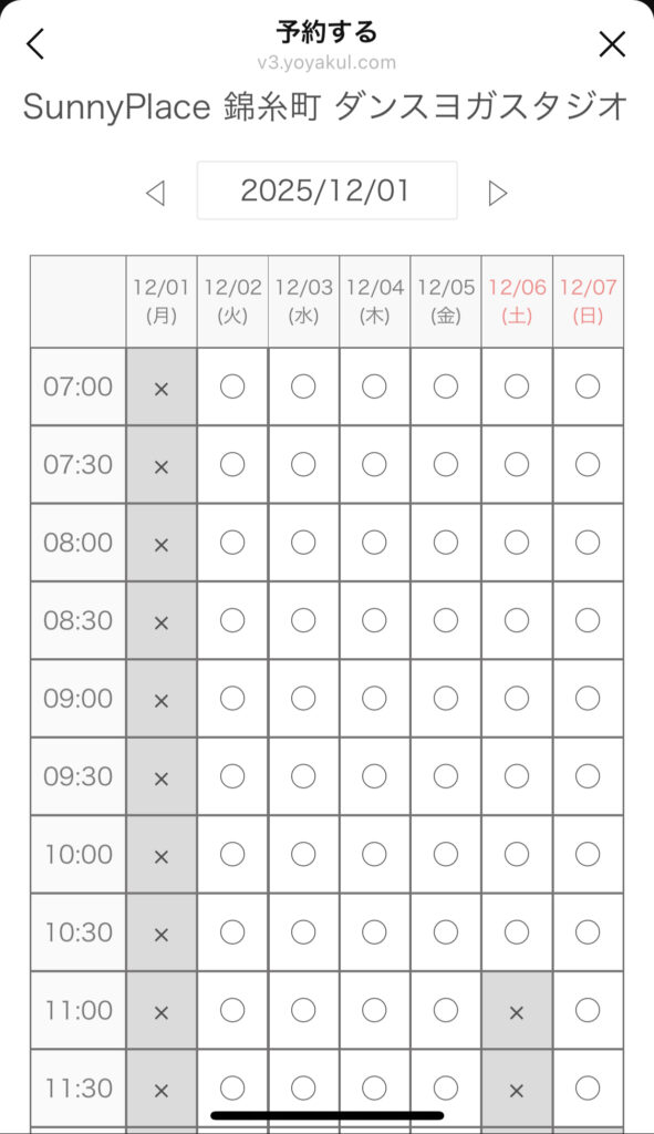 ②予約するスタジオを選び、希望日時に空きがあればその日時を選びます。