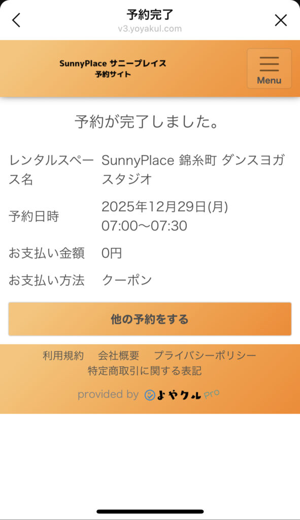 ④予約が完了すると、予約内容・ご利用案内・アクセス・鍵の開け方などの詳細が書かれてるメッセージが届くので、それを確認します。